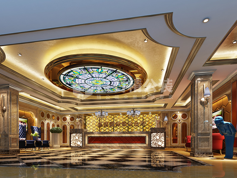 本案设计为欧式奢华风格,主材包括UV大理石板、仿古瓷砖、软包、不锈钢、铁艺、玻璃等。