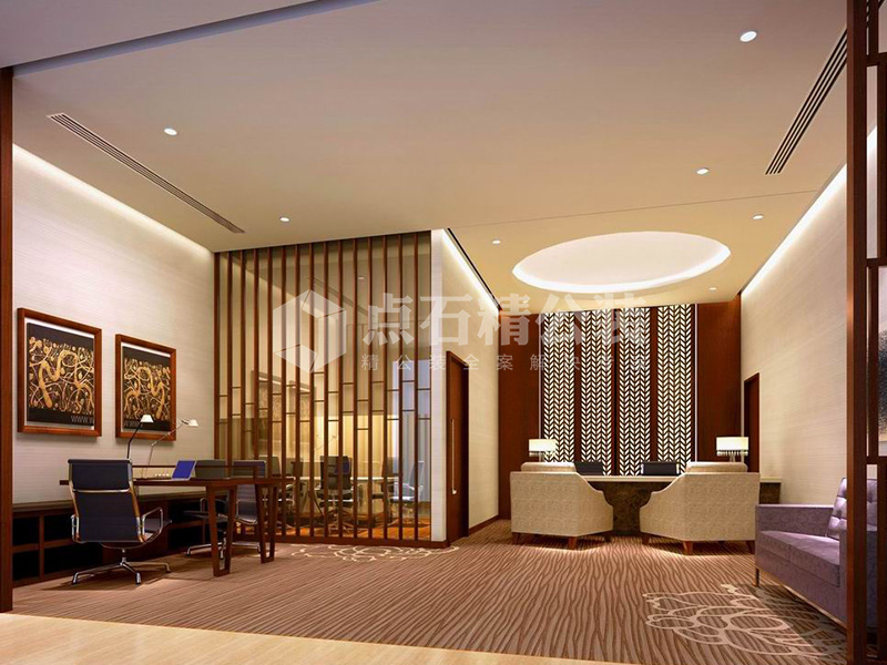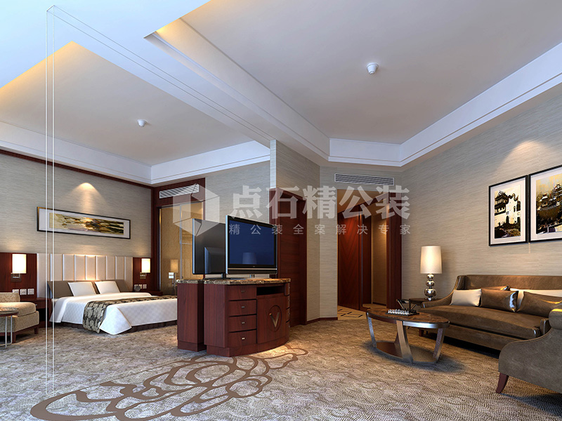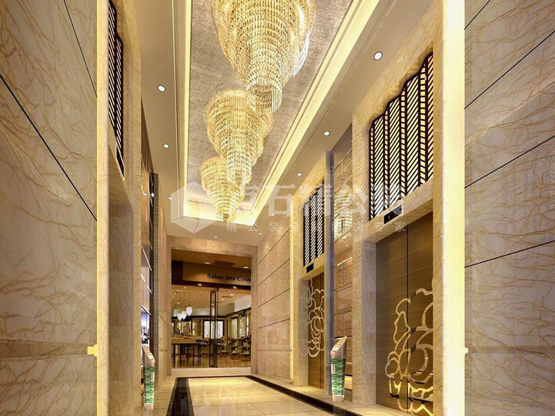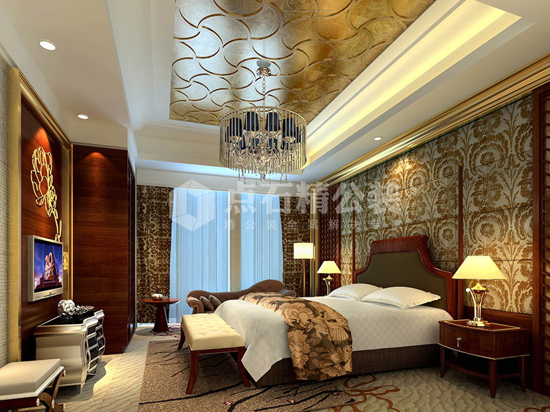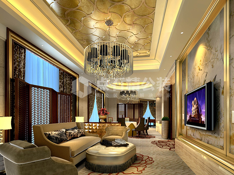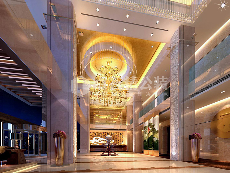 说明:大堂、酒廊、电梯厅等公共区域采用欧式风格,以华丽的装饰、浓烈的色彩、精美的造型达到雍容华贵的装饰效果,给人以豪华、大气、奢侈的感觉。套房则风格各异,整体上以大气简洁为主。